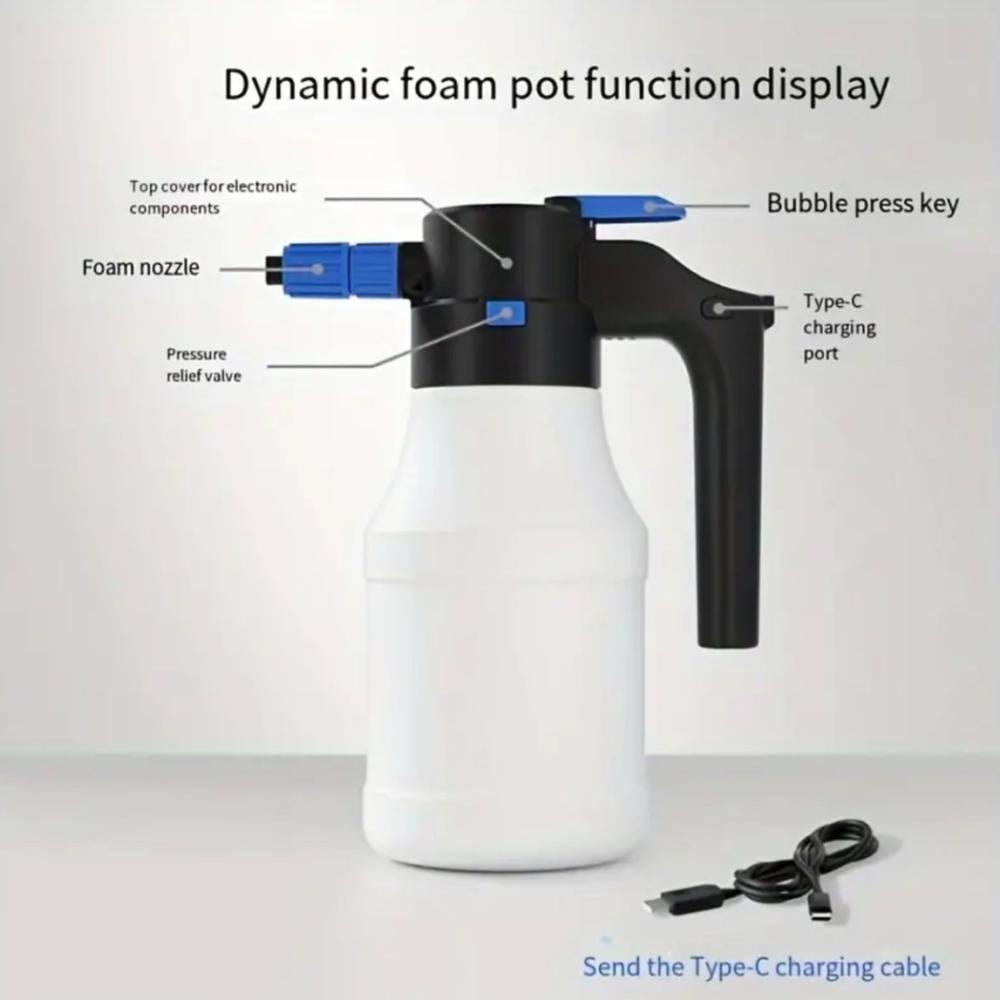 بخاخ رغوة كهربائي ذكي لغسيل السيارات – سعة 2 لتر، شحن USB، بطارية 4500mAh