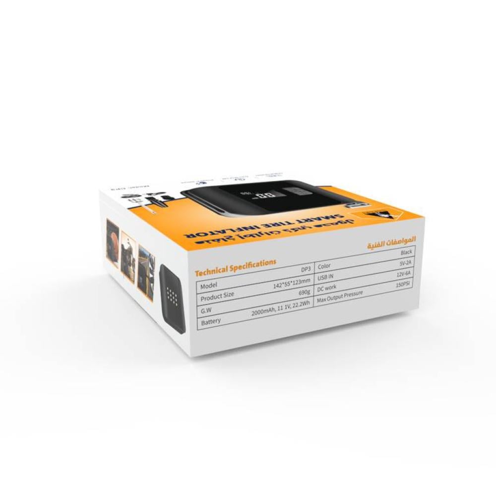 وياتي معه راوس عديد لتعبئة الهواء منها لكرات القدم و السيارات و الدرجات و العديد من الراوس
